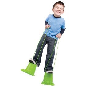 Durable plastic stilt feet and adjustable straps.