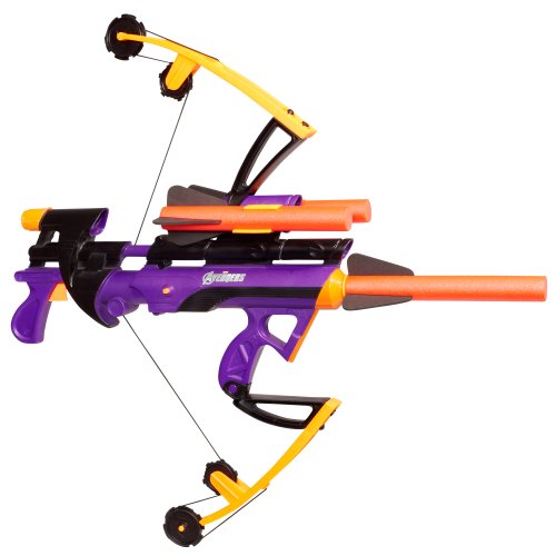 - This AVENGERS' HAWKEYE BOW toy lets you fire the 3 included arrows up to 35 feet away like your favorite hero!